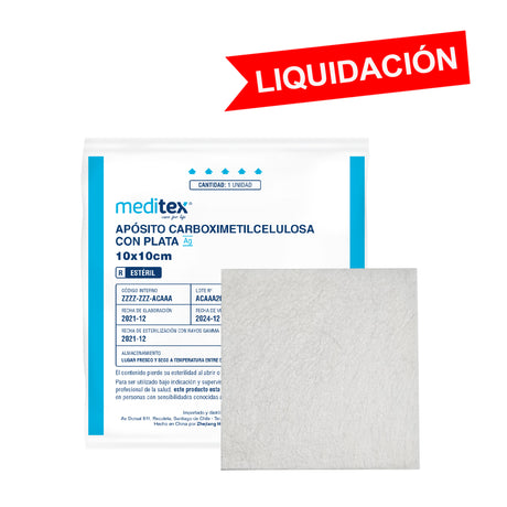 Apósito carboximetilcelulosa con plata 10cm x 10cm estéril
