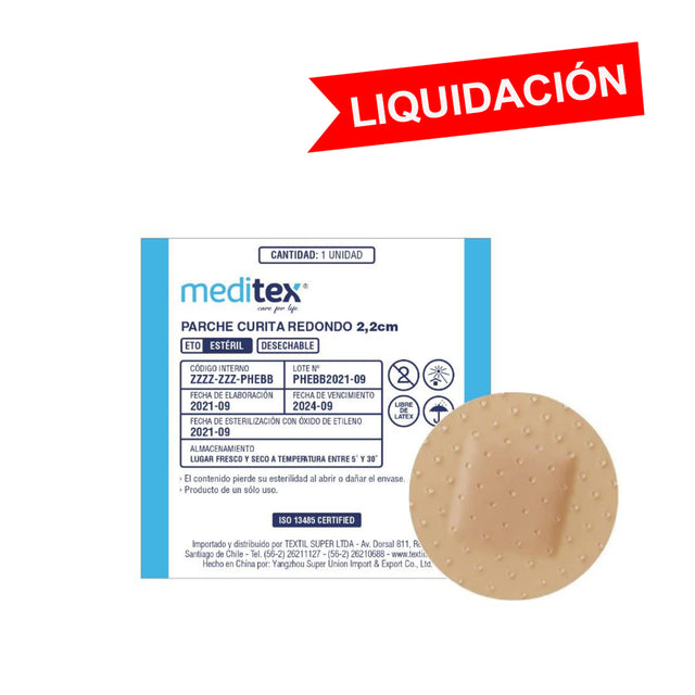 Parche curita redondo 2.2cm (22mm) de diámetro Almacenamiento: lugar fresco y seco a temperatura entre 5° y 30°.