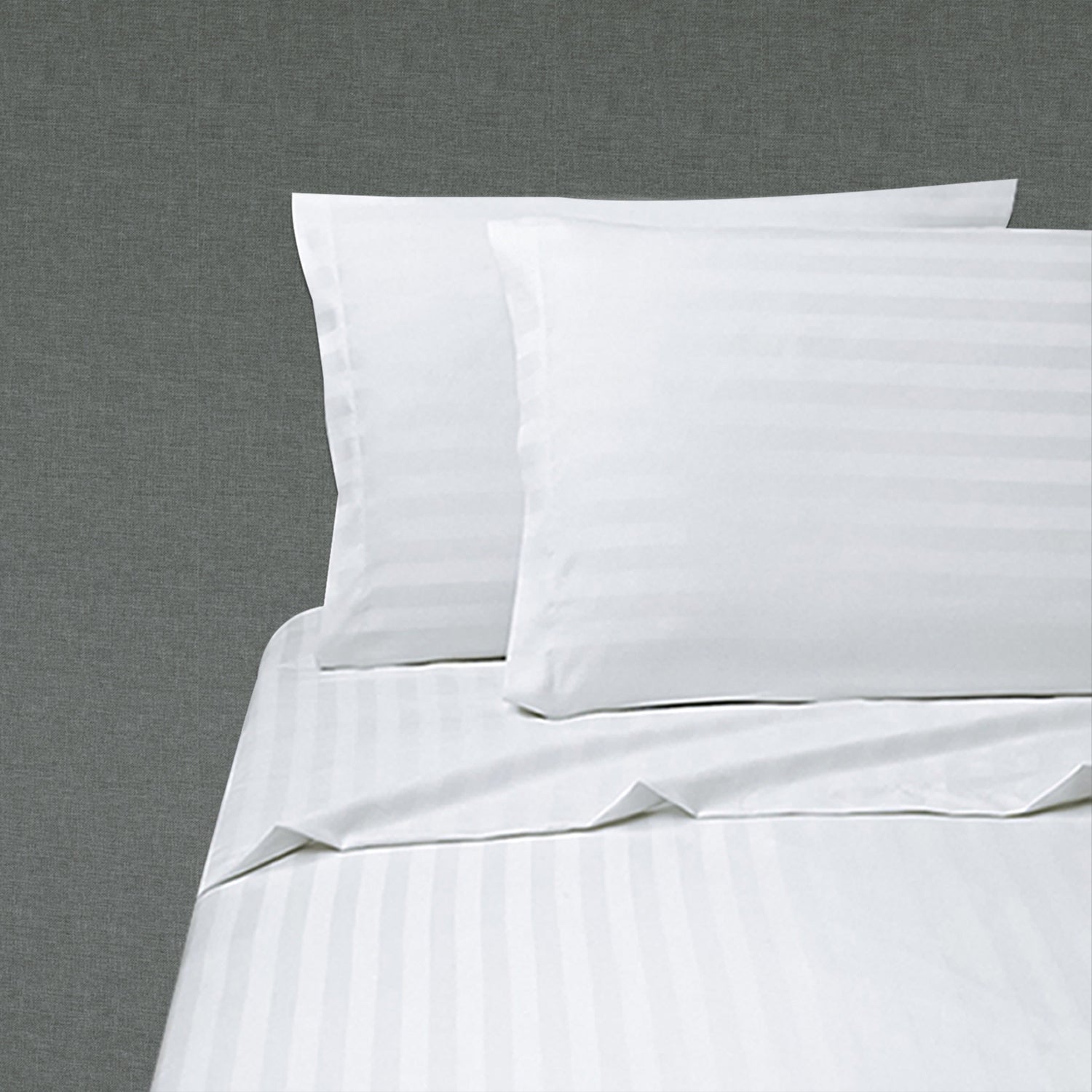 Juego de Sábanas 1,5 Plazas Blancas 300 Hilos poligal listado 2cm